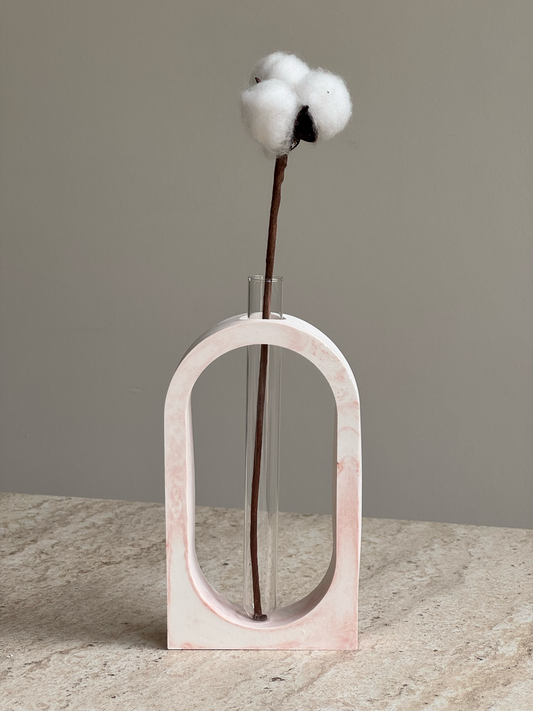 Kavisli Form Batik Desenli Cam Tüplü Vazo Minimal Kuru/Islak Çicek Vazosu