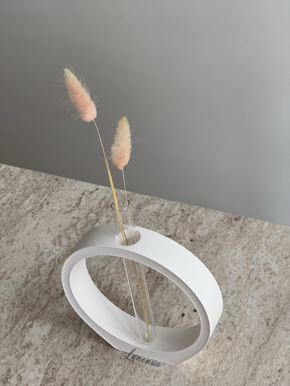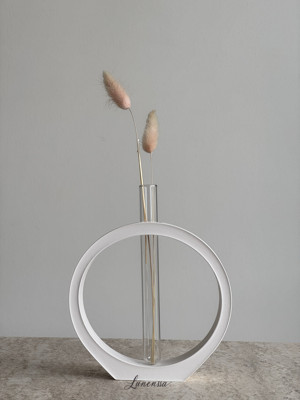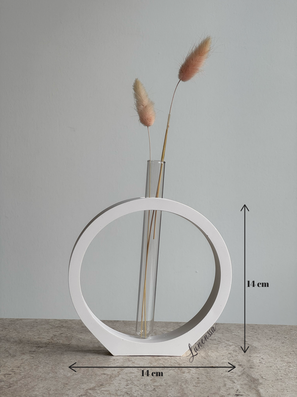 Ürün görseldeki gibi geldi, paketleme oldukça özenliydi. Minimalist tasarımı ve beyaz rengiyle masama çok zarif bir hava kattı. Cam tüpler sağlam ve oturdukları çerçeve de dengeli. İçine kuru çiçekler koyarak dekoratif olarak değerlendirdim, çok beğenildi. Üçlü set olması hem simetri sağlıyor hem de boş bir alanı güzelce dolduruyor. Tavsiye ederim.